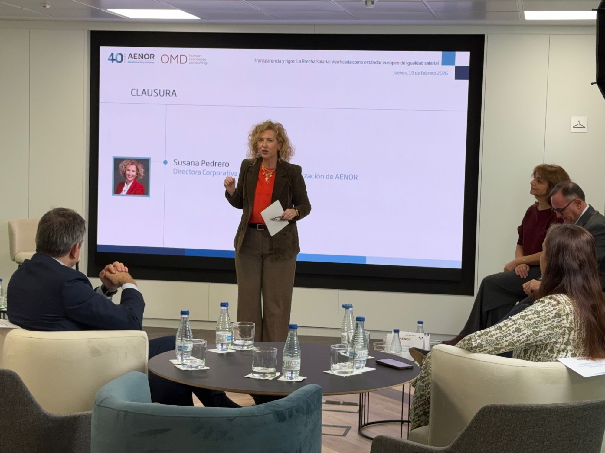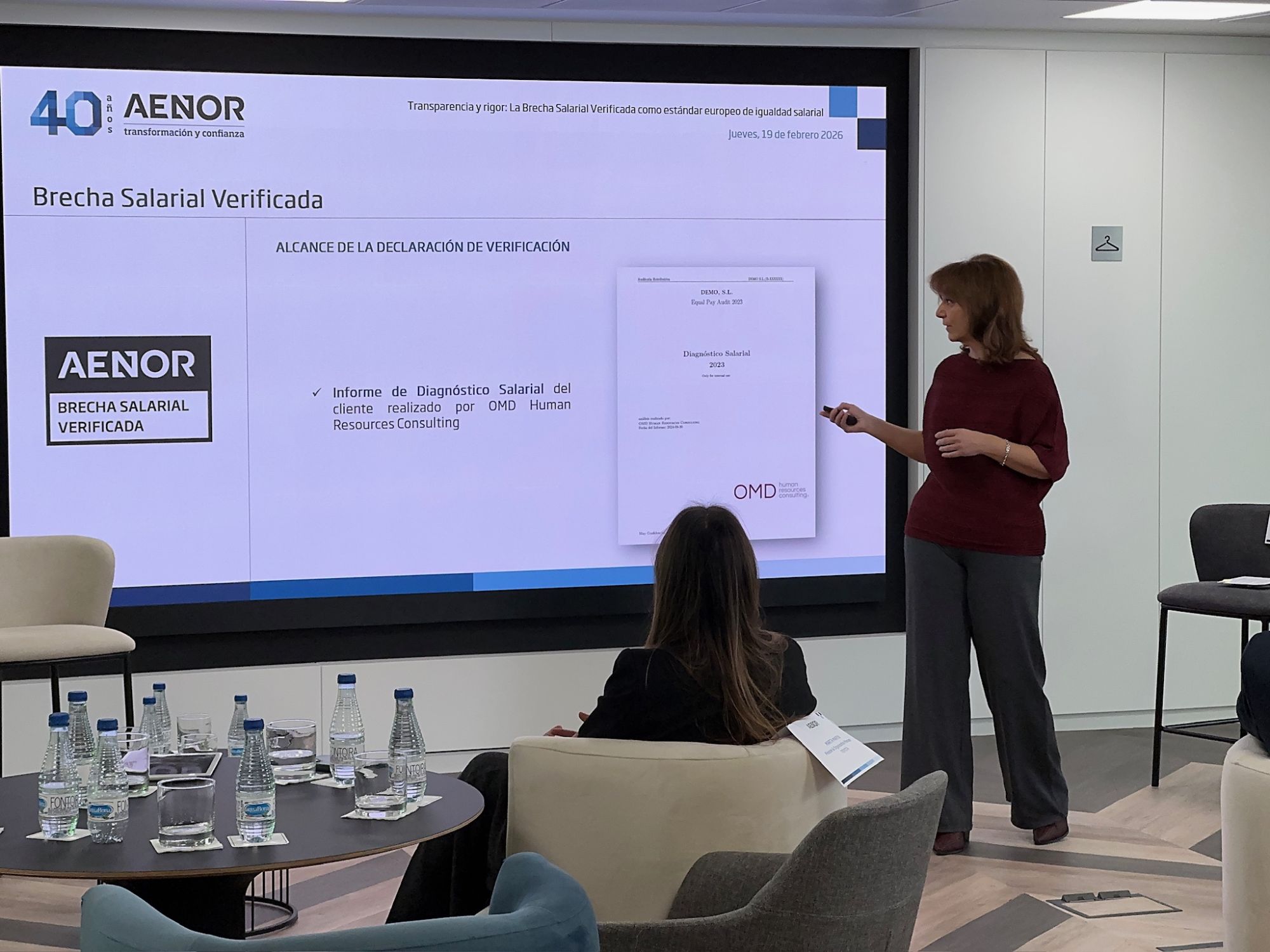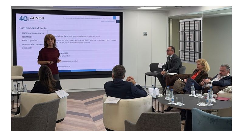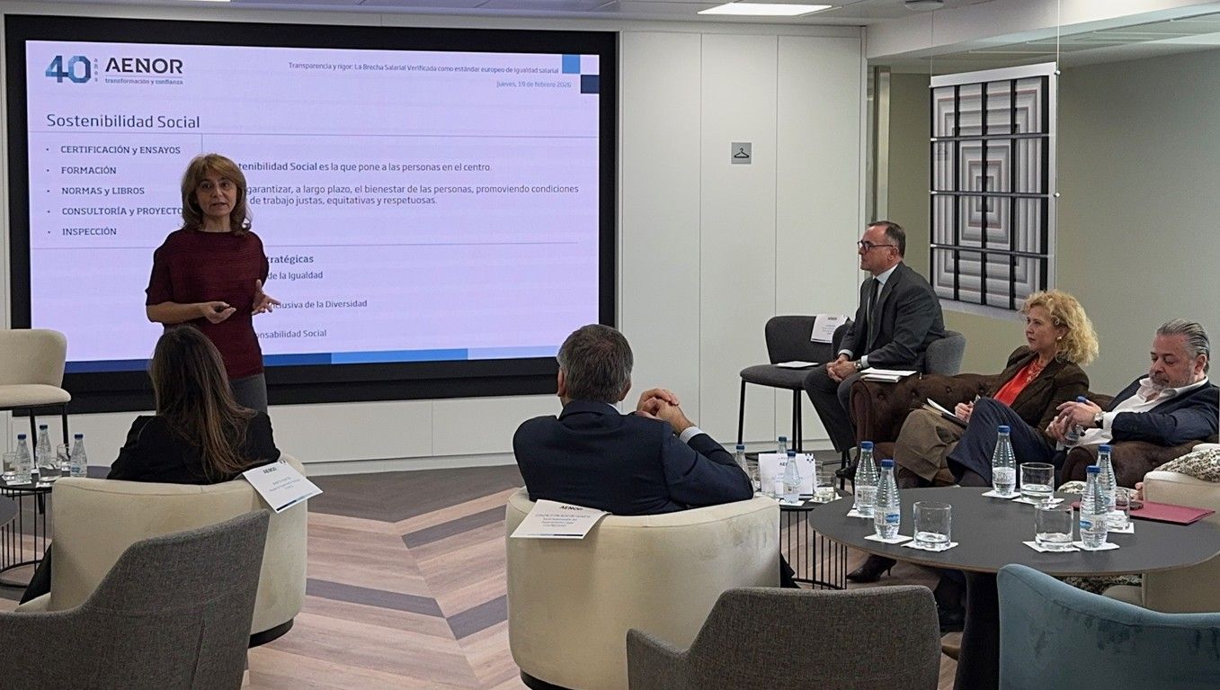 Durante la sesión se explicó cómo AENOR acompaña a las organizaciones con la Declaración de Brecha Salarial Verificada, una metodología sólida que aporta datos trazables y objetivos, transparencia y confianza para todos los grupos de interés, y al mismo tiempo es un estándar alineado con las exigencias regulatorias europeas.